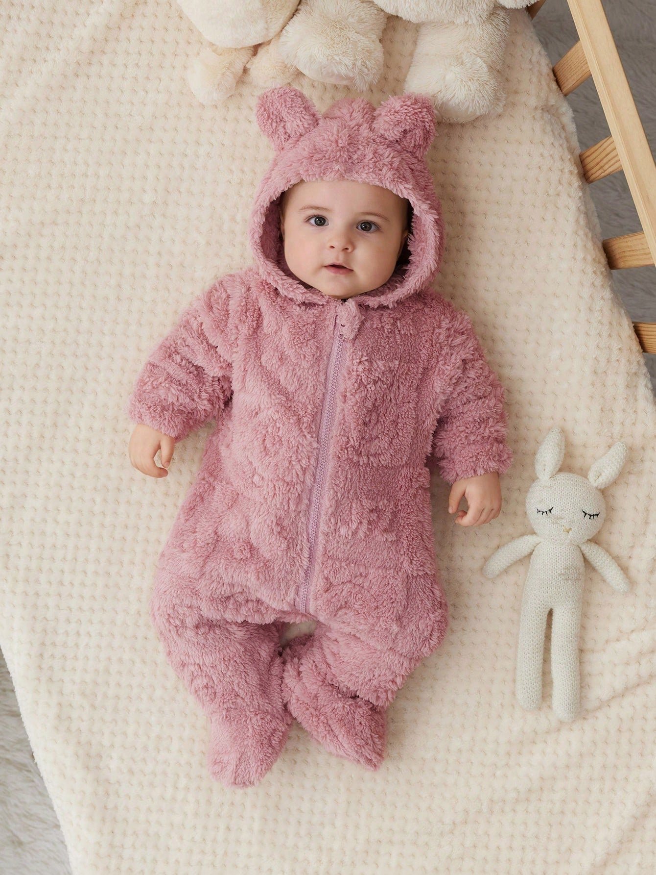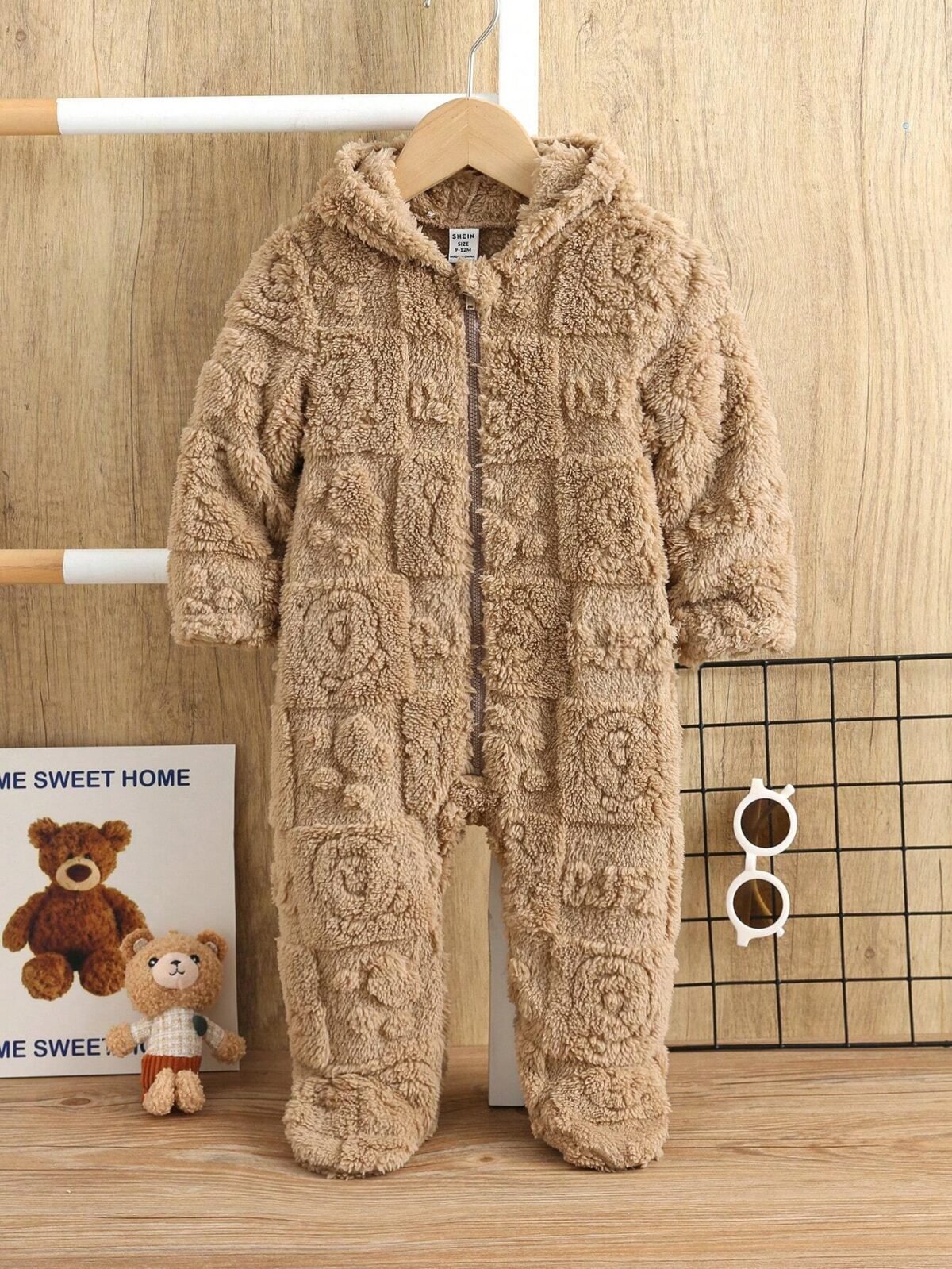 SnuggleCub™ Fleece Hooded Footie Romper | Warm Cartoon-Print for Newborn Boys & Girls